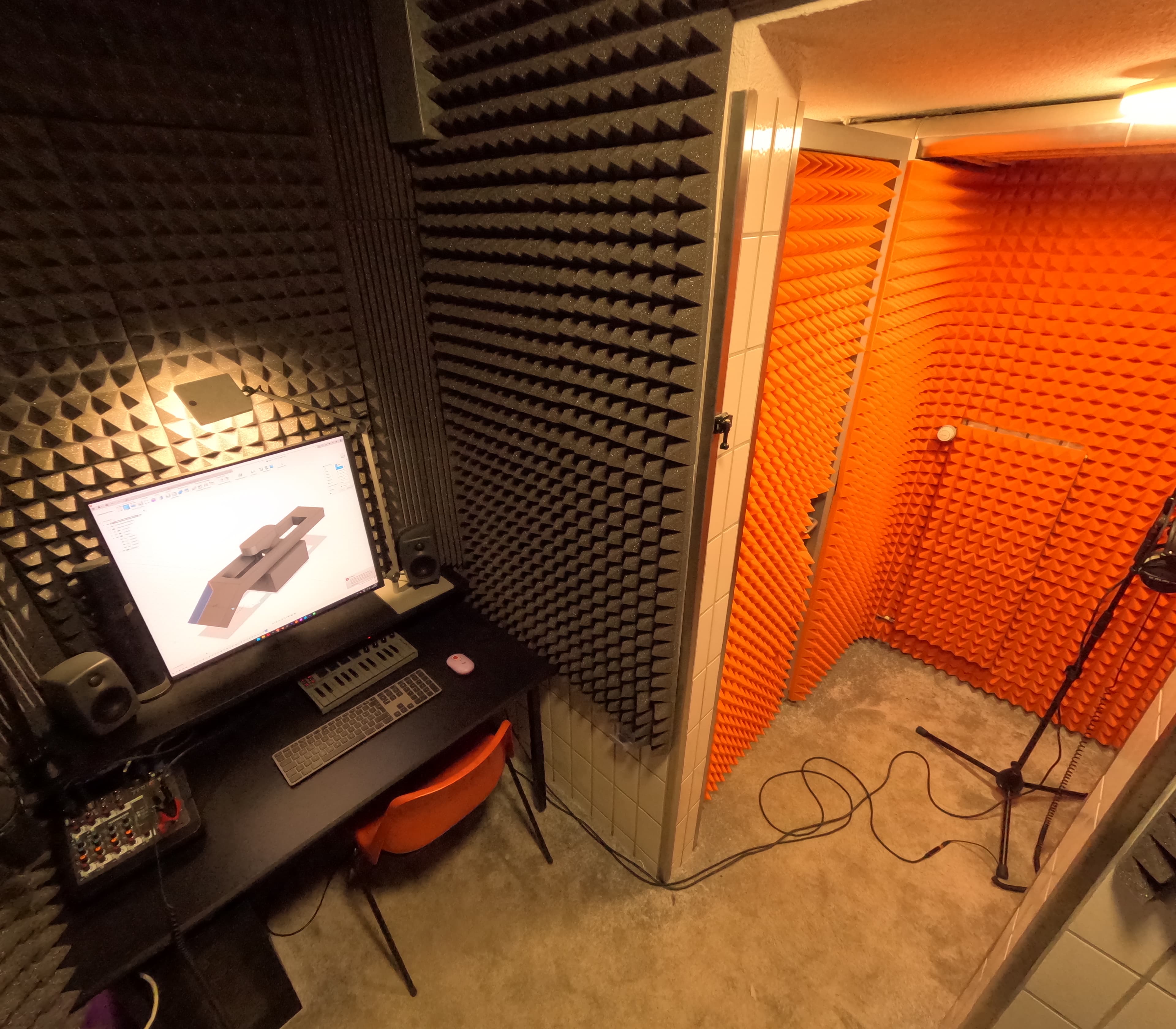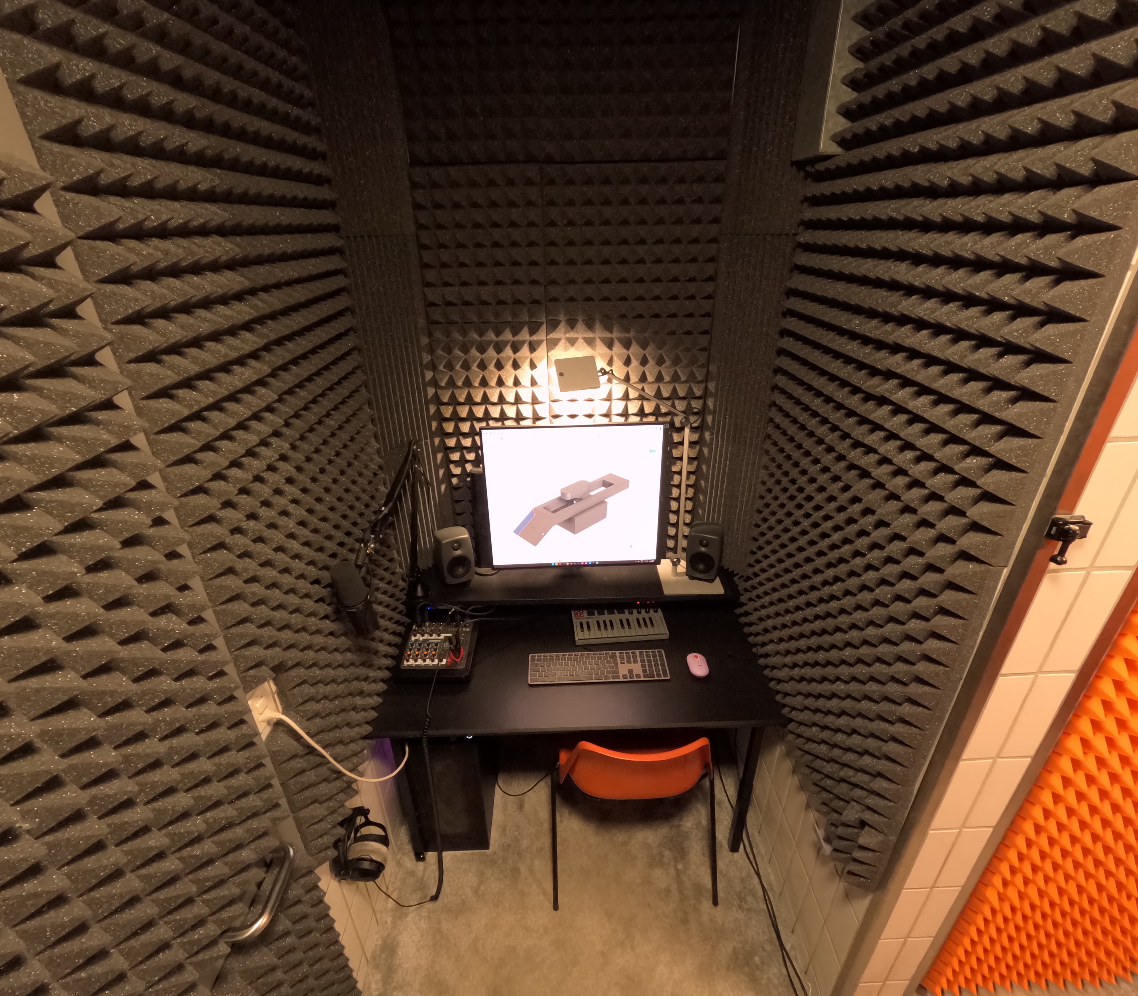Unsere Audio-Box ist eine kleine, aber durchdacht ausgestattete Recording Booth; ideal für Vocal-Aufnahmen, Podcasts, Voiceovers oder erste Musikproduktionen.