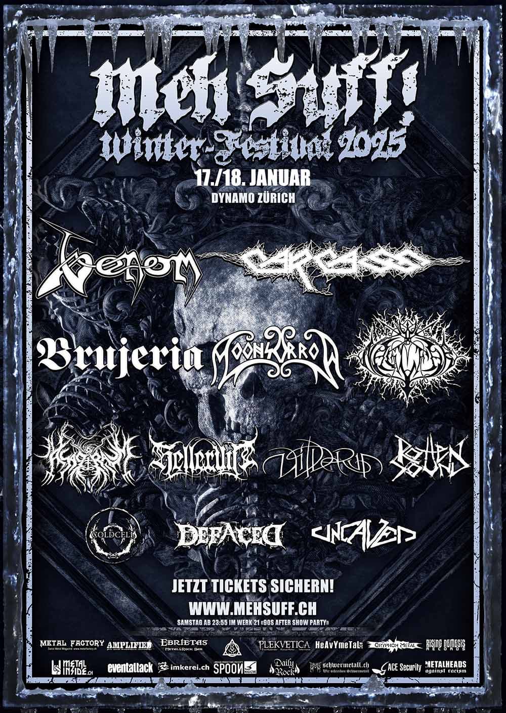VENOM (UK) / CARCASS (UK) / BRUJERIA (US) / MOONSORROW (FI) / NAGLFAR (SE) / ASAGRAUM (NL) / HELLERUIN (NL) / ROTTEN SOUND (FI) / WILDERUN (US) / COLDCELL (CH) / DEFACED (CH) / UNCAVED (CH)